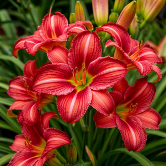 Окраска цветков лилейников поражает своим разнообразием: от нежно-кремовых и пастельных тонов до ярких красных, оранжевых, желтых, фиолетовых и даже почти черных. Часто встречаются двухцветные и многоцветные сорта с контрастными краями, полосками, глазками (окрашенное пятно в центре цветка) и другими узорами.